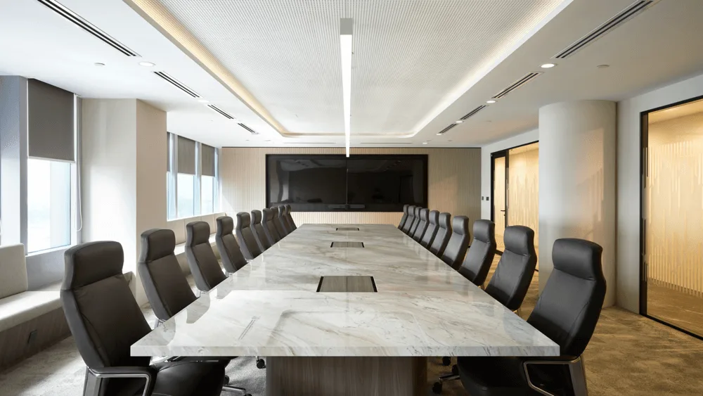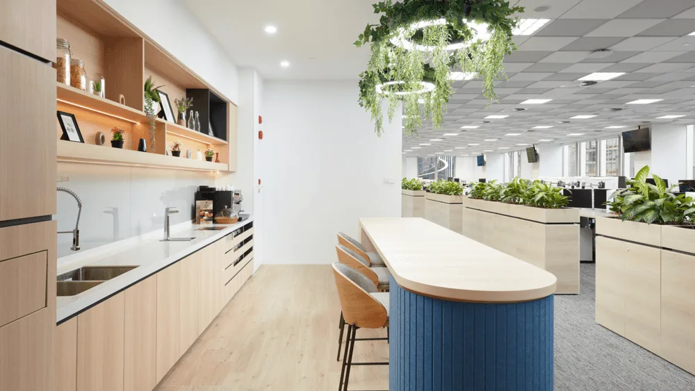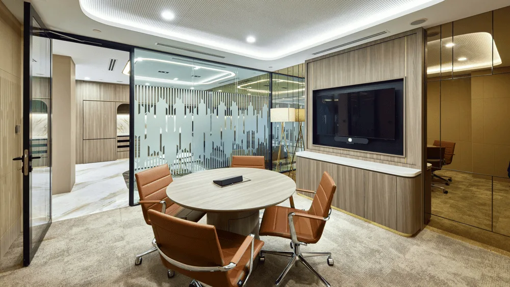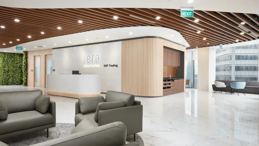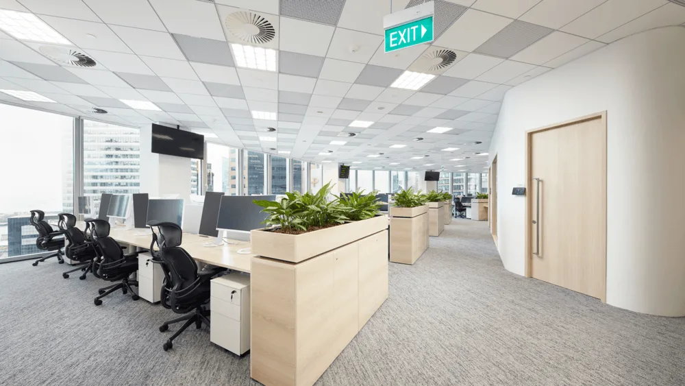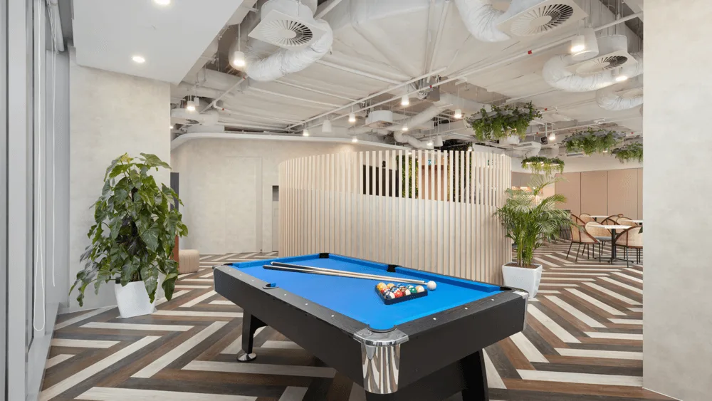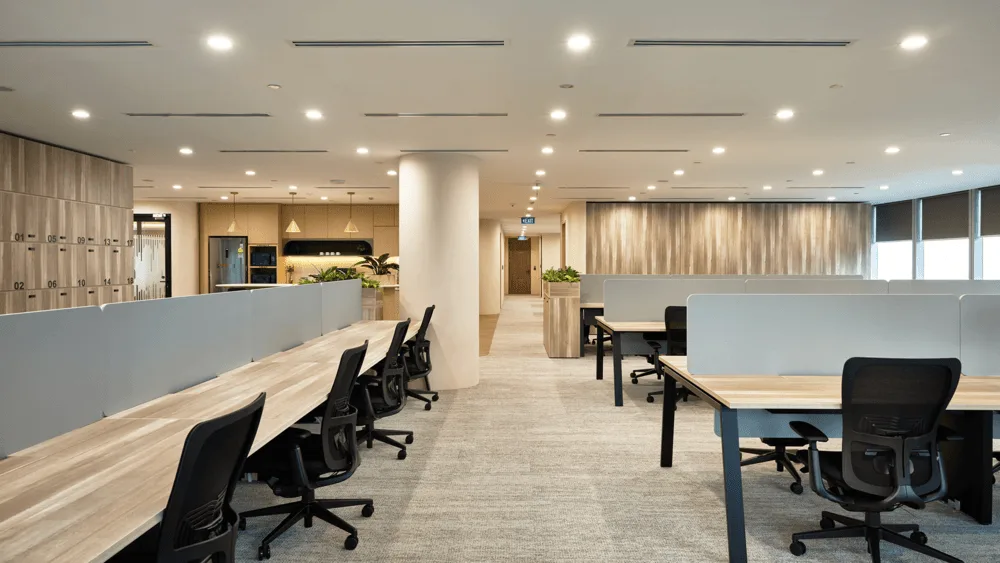 adm Design & Build enhanced BNI Singapore’s new office at 30 Raffles Place with a nature-inspired design concept incorporating luxurious elements, diverse workspaces, and employee wellness features.