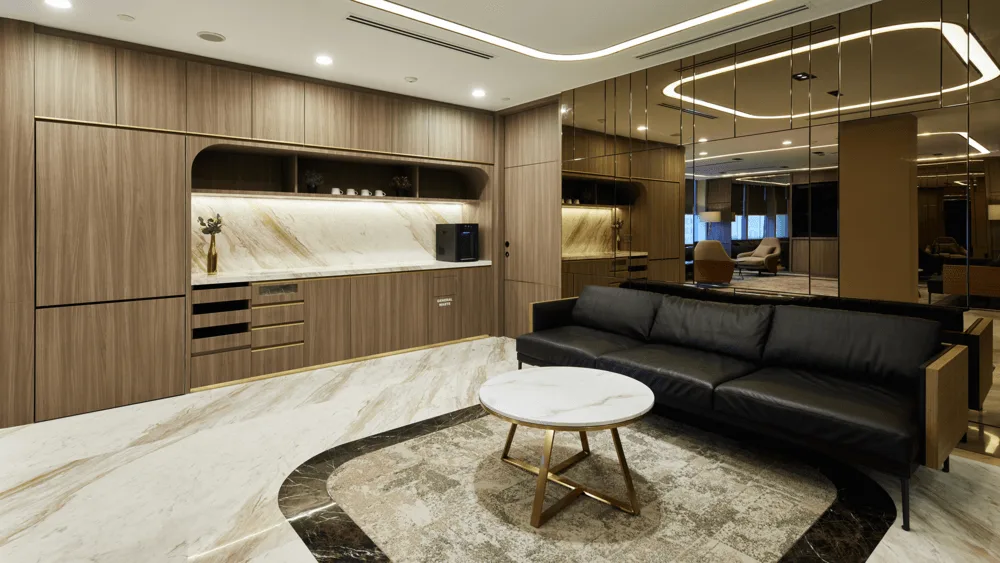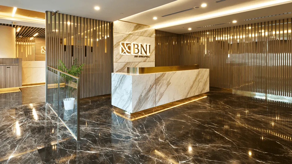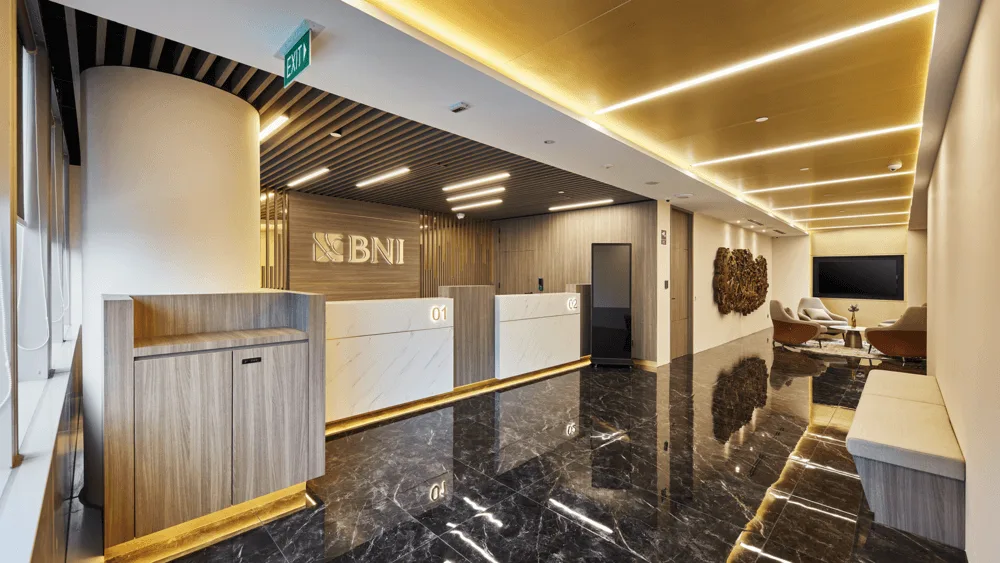 Inspired by Indonesia’s beautiful landscape of natural terrain, the feature wall design of the reception counters coupled with the natural floor marble, the reception area offers a fusion of luxurious and immersive hospitality experience to BNI’s clientele.