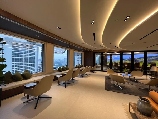adm Design & Build enhanced BNI Singapore’s new office at 30 Raffles Place with a nature-inspired design concept incorporating luxurious elements, diverse workspaces, and employee wellness features.